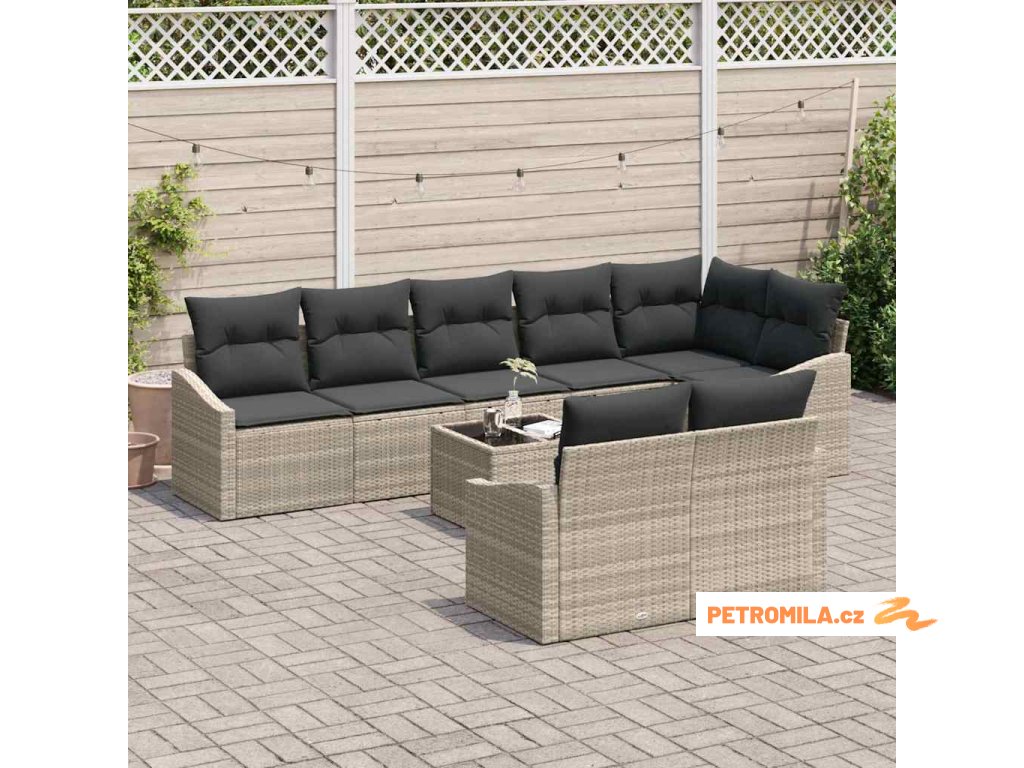 Set pohovek s polštářem 9 pcs Světle šedá polyratan
