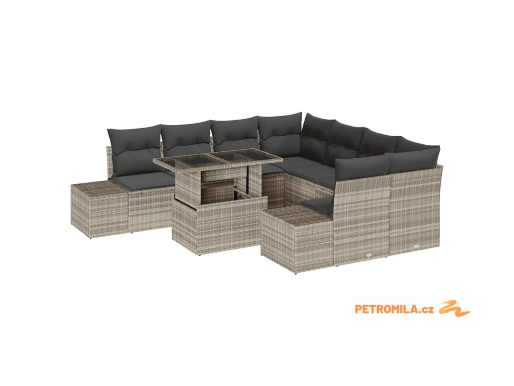 Set pohovek s polštářem 9 pcs Světle šedá polyratan