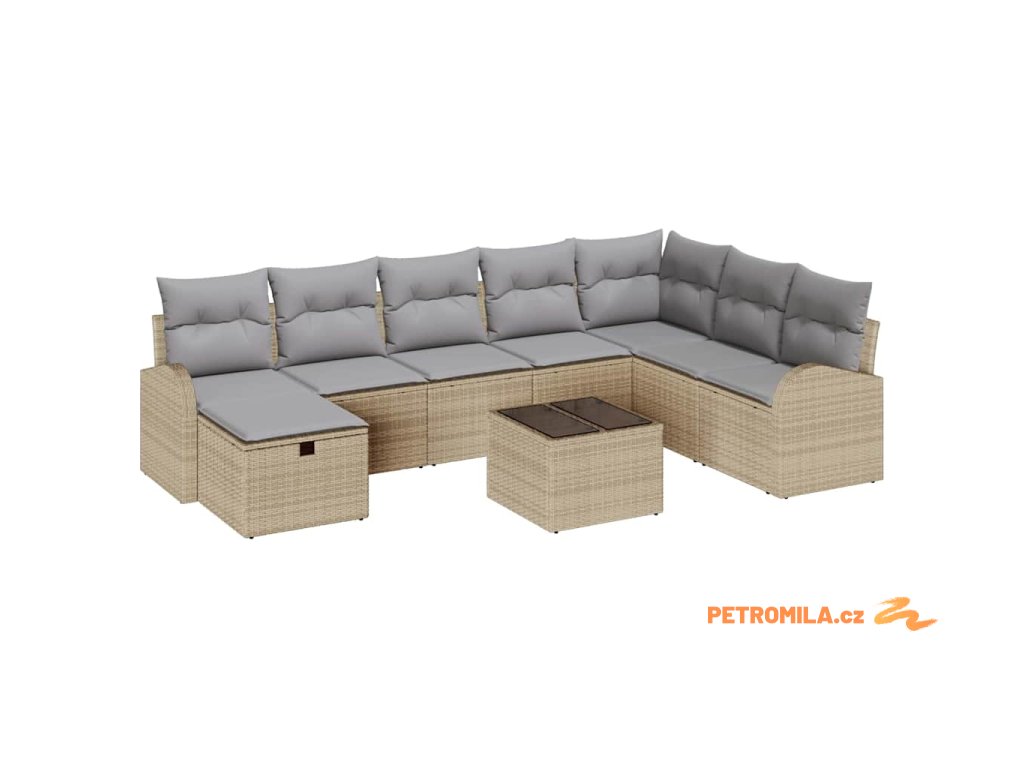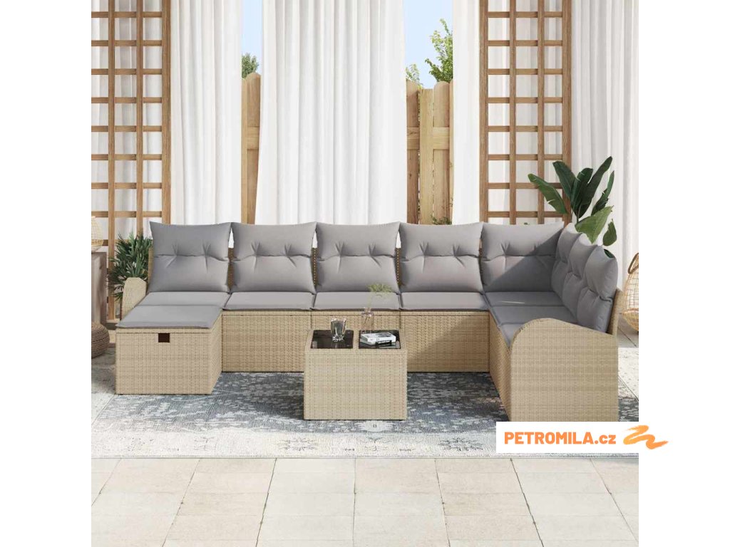 Set pohovek s polštářem béžová a světle šedá polyratan