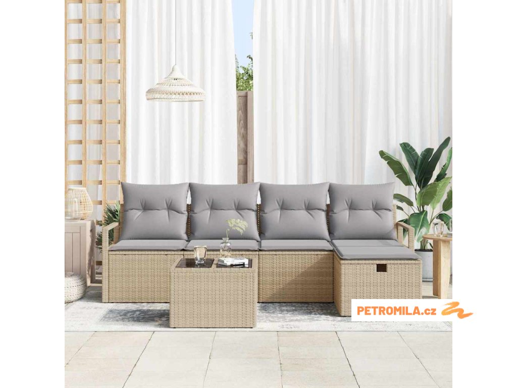 - Odolný rám z poly ratanu: Souprava má pevný rám z práškované oceli, který zajišťuje stabilitu. Poly ratan na každém prvku dodává moderní vzhled a chrání před UV zářením a počasím, což ji dělá skvělou pro venkovní použití po celý rok.