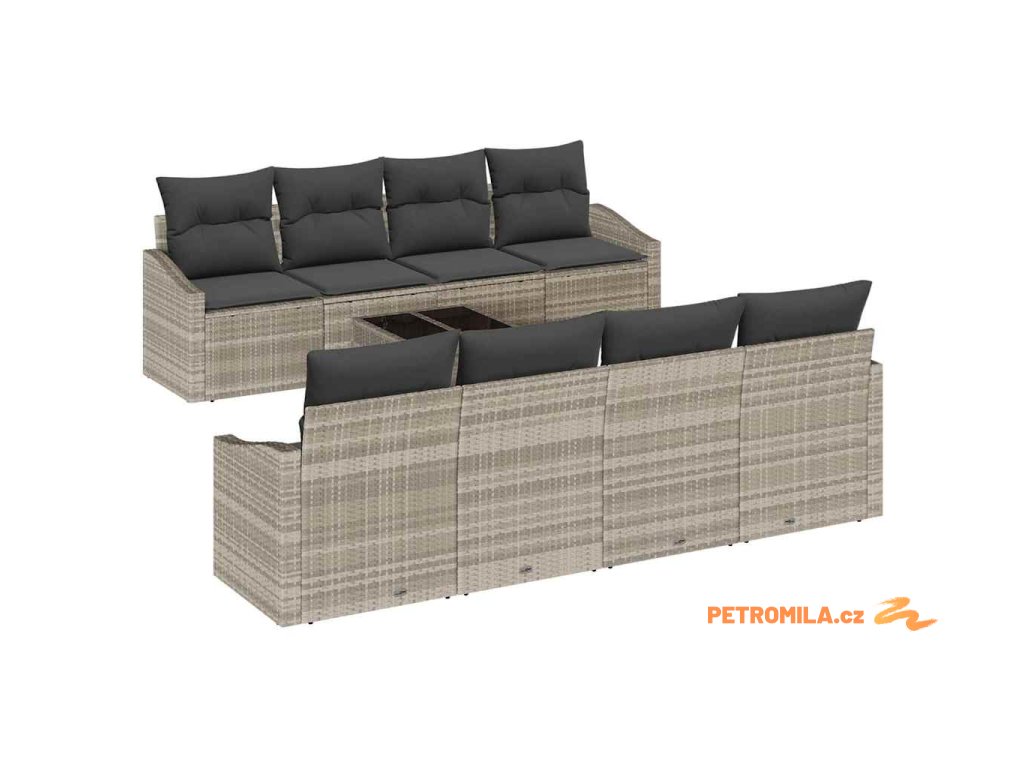 Set pohovek s polštářem s polštářem 9 pcs Světle šedá polyratan
