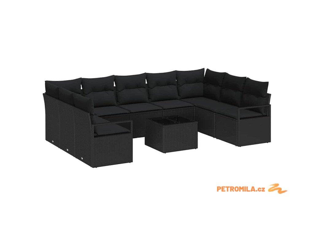 Set pohovek s polštářem s úložištěm 10 pcs Černá polyratan