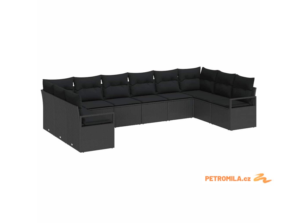 Set pohovek s polštářem s úložištěm 10 pcs Černá polyratan