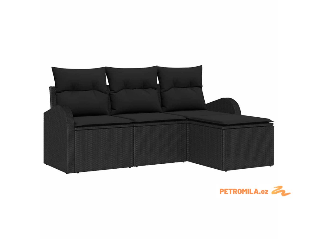 Set pohovek s polštářem s úložištěm 4 pcs Černá polyratan