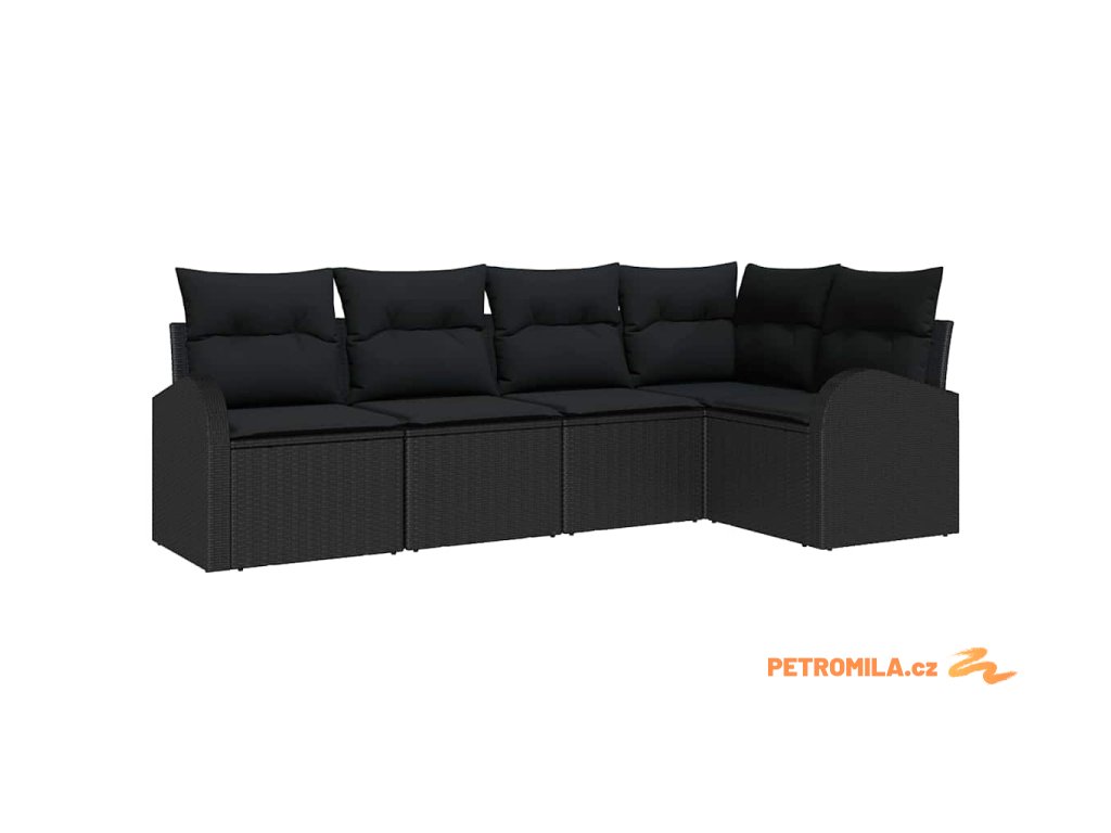 Set pohovek s polštářem s úložištěm 5 pcs Černá polyratan