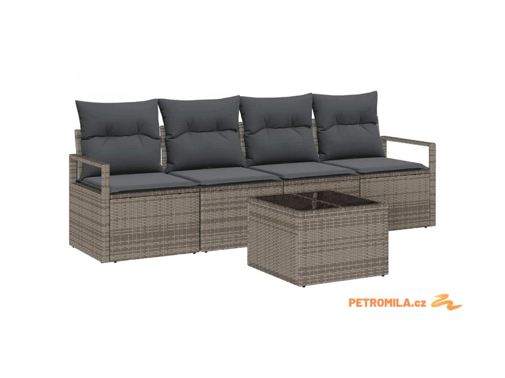 Set pohovek s polštářem s úložištěm 5 pcs Šedá polyratan