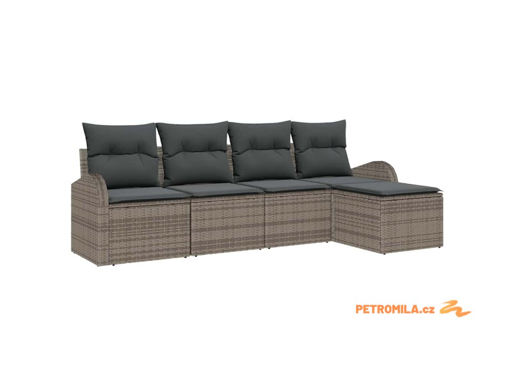 Set pohovek s polštářem s úložištěm 5 pcs Šedá polyratan