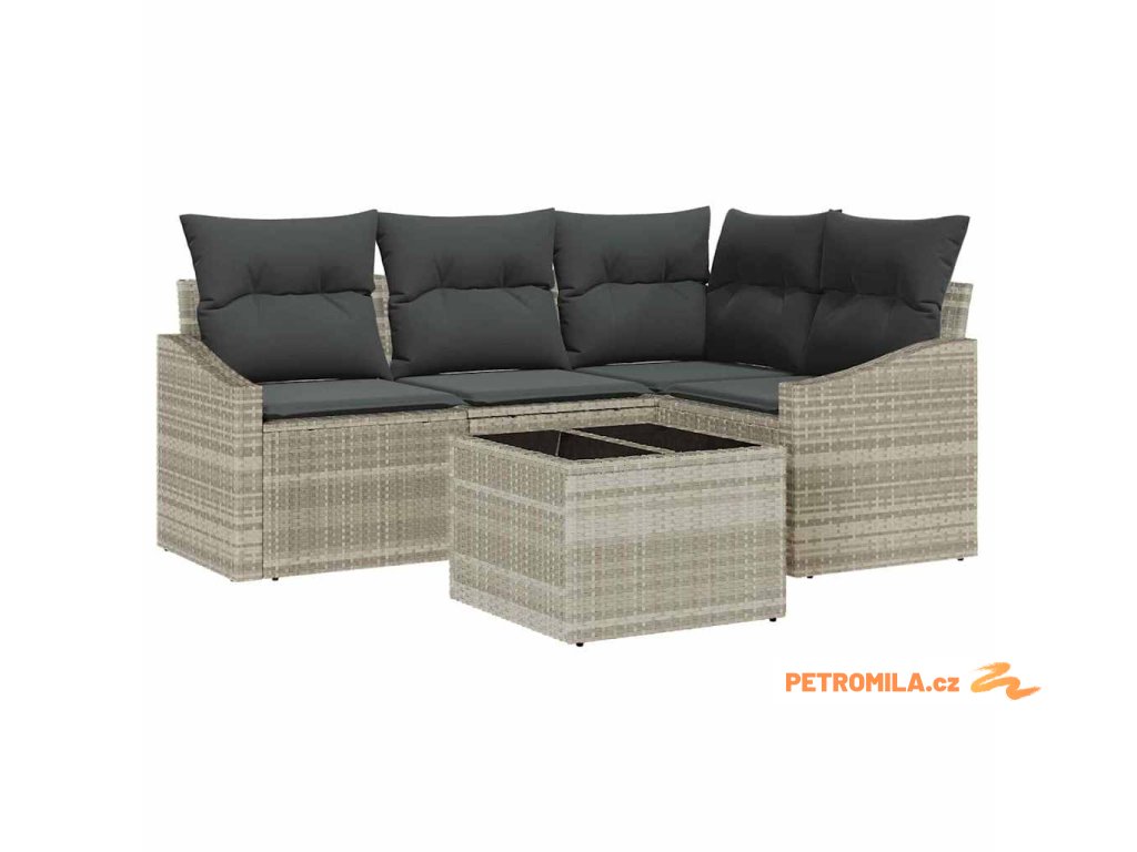 Set pohovek s polštářem s úložištěm 5 pcs Světle šedá polyratan