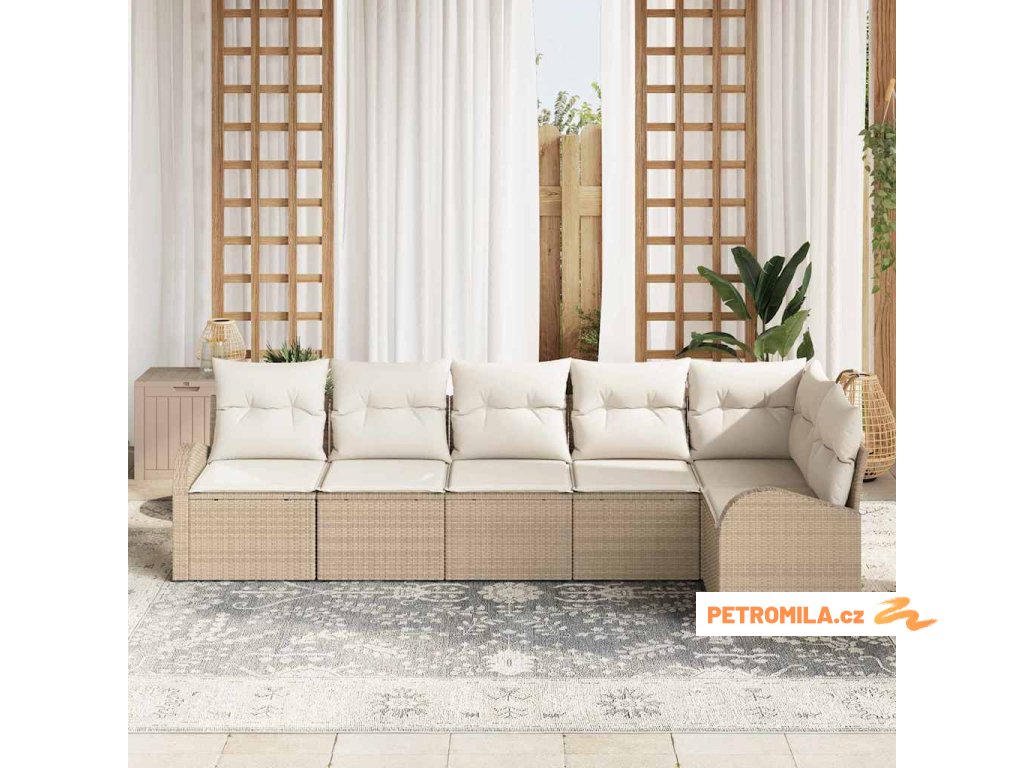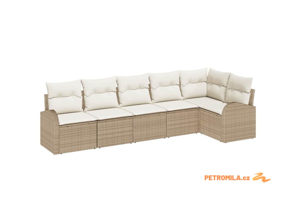 Sada zahradních pohovek s polštářem 6 pcs Béžová Poly Ratan