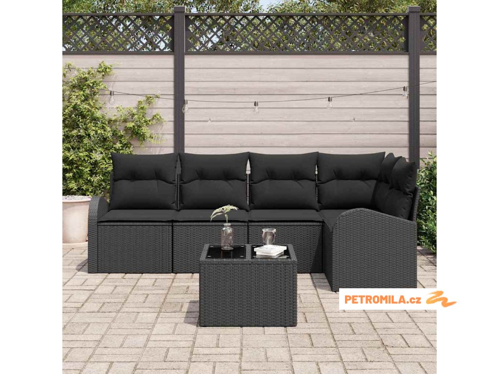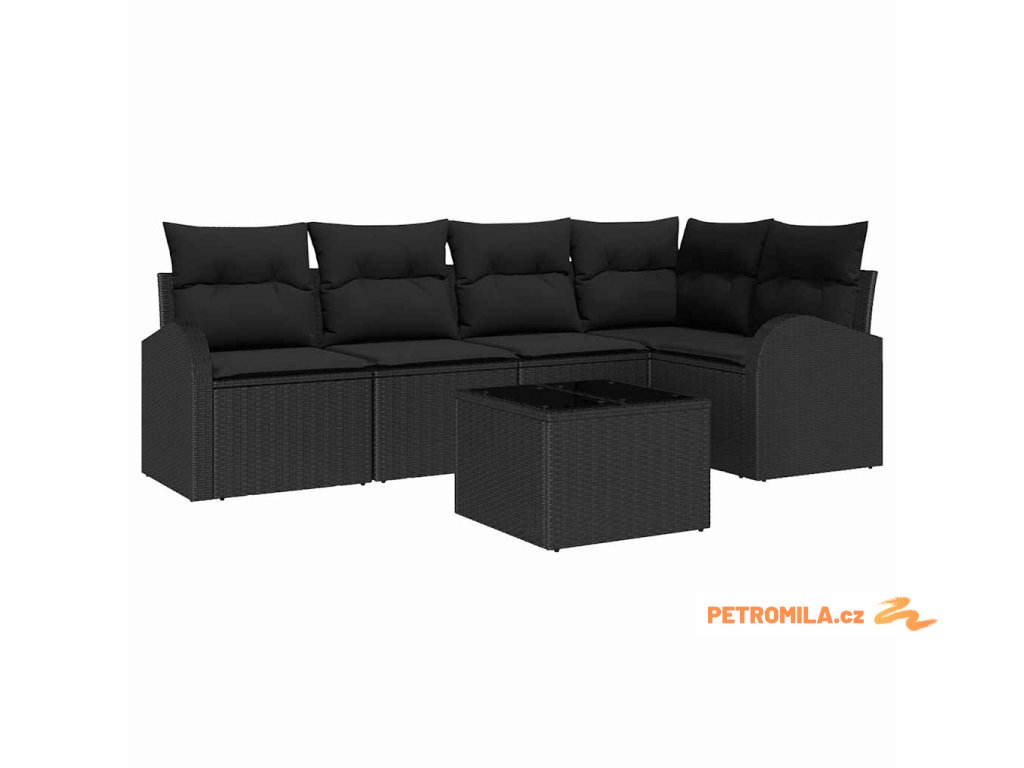 Set pohovek s polštářem s úložištěm 6 pcs Černá polyratan