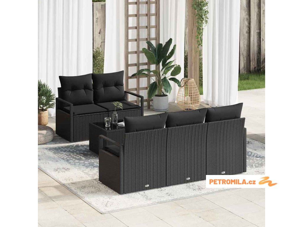 Set pohovek s polštářem s úložištěm 6 pcs Černá polyratan