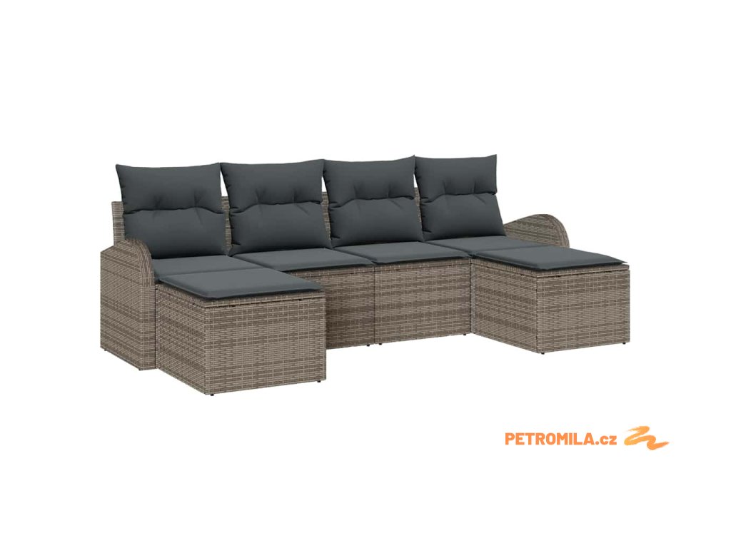 Set pohovek s polštářem s úložištěm 6 pcs Šedá polyratan
