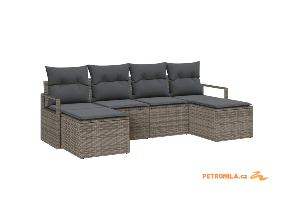 Set pohovek s polštářem s úložištěm 6 pcs Šedá polyratan