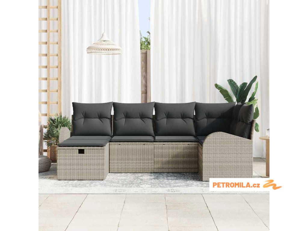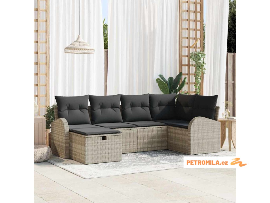 Set pohovek s polštářem s úložištěm 6 pcs Světle šedá polyratan