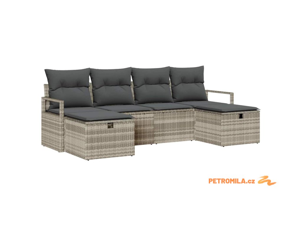 Set pohovek s polštářem s úložištěm 6 pcs Světle šedá polyratan