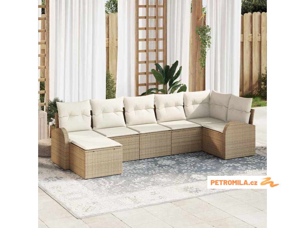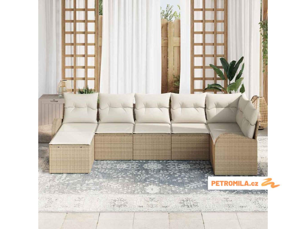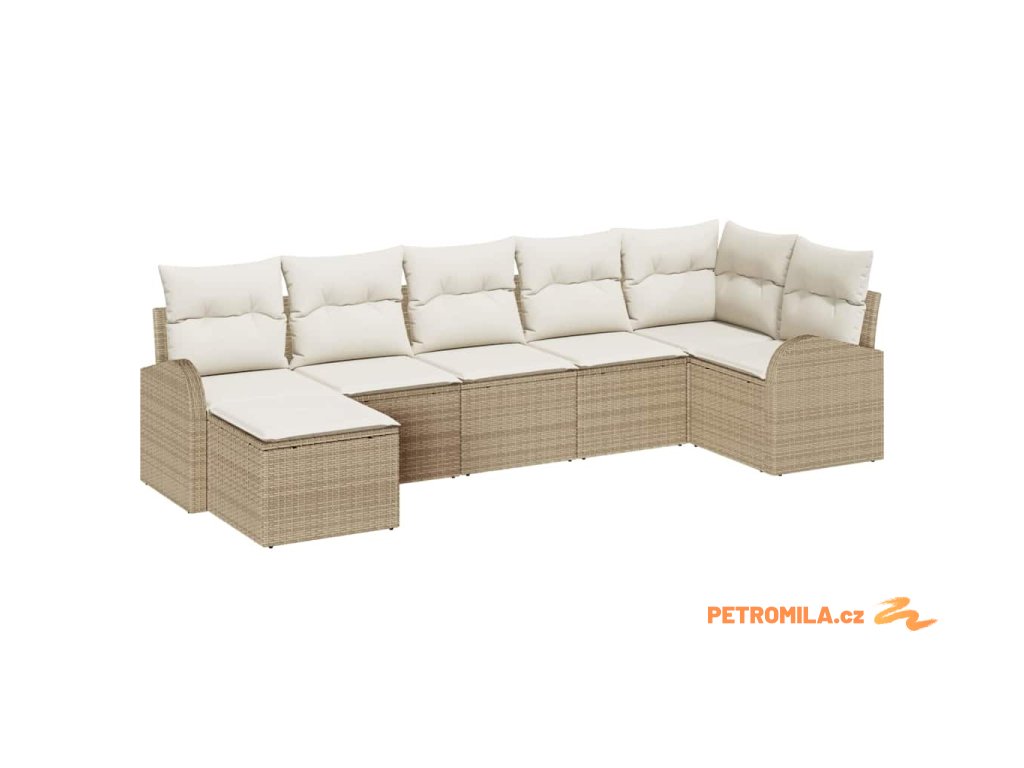 Set pohovek s polštářem s úložištěm 7 pcs Béžová polyratan