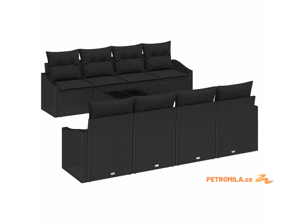 Set pohovek s polštářem s úložištěm 7 pcs Černá polyratan