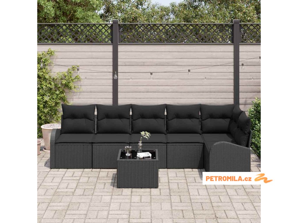 Set pohovek s polštářem s úložištěm 7 pcs Černá polyratan