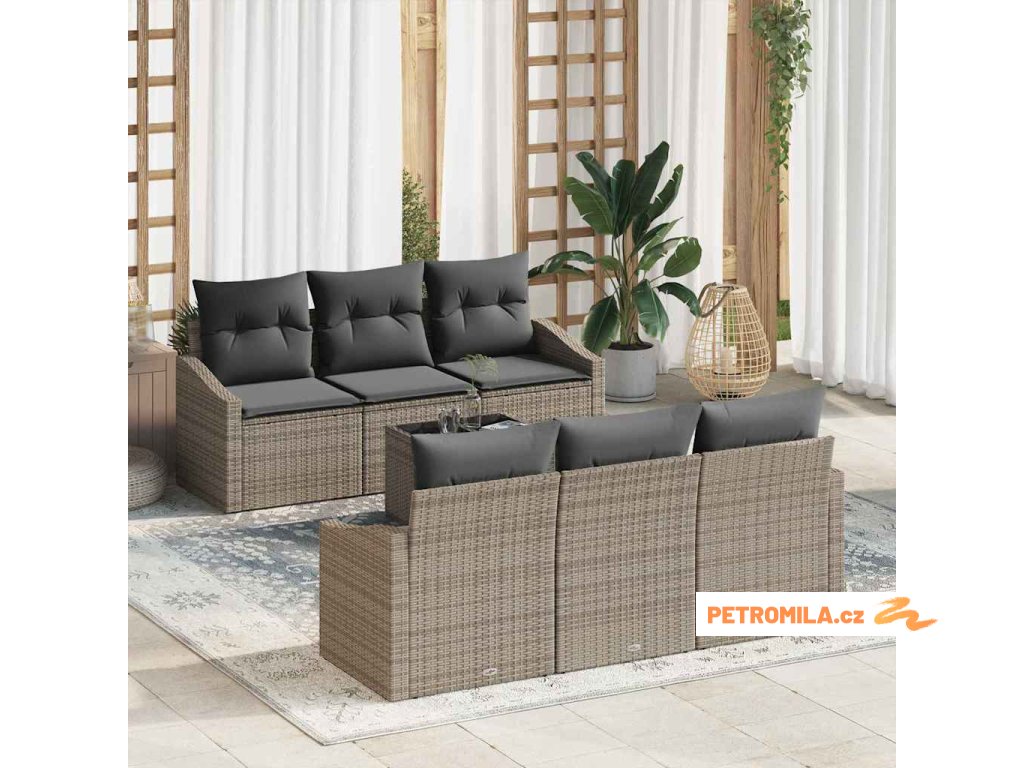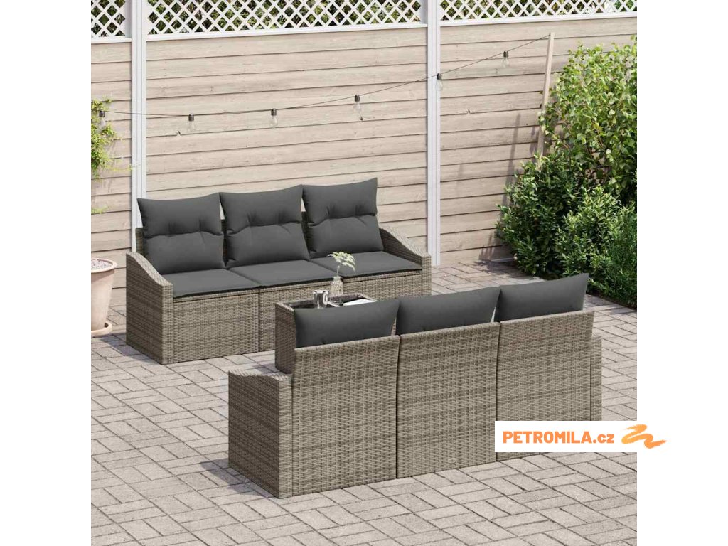 Set pohovek s polštářem s úložištěm 7 pcs Šedá polyratan