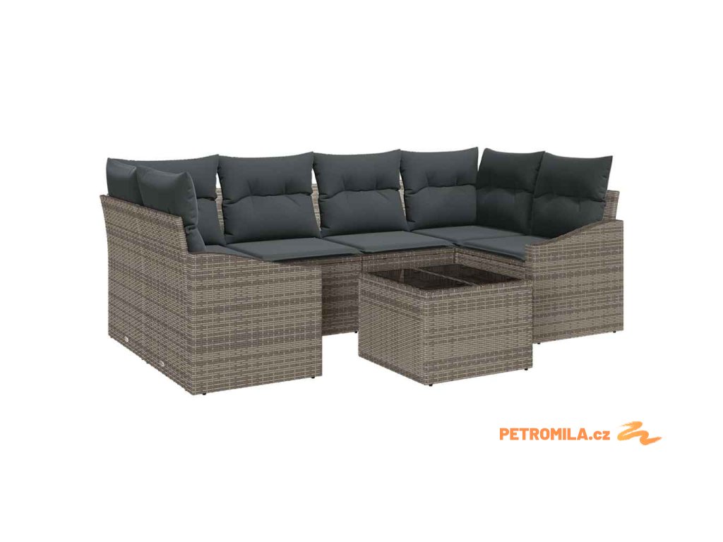 Set pohovek s polštářem s úložištěm 7 pcs Šedá polyratan