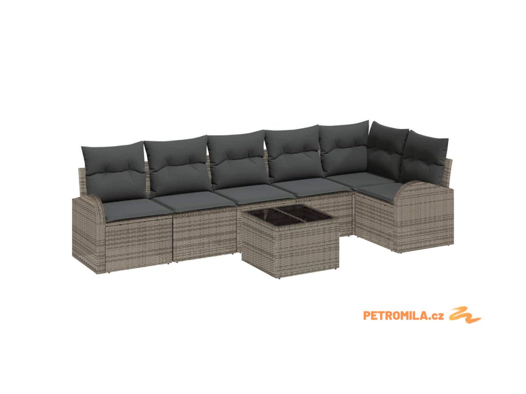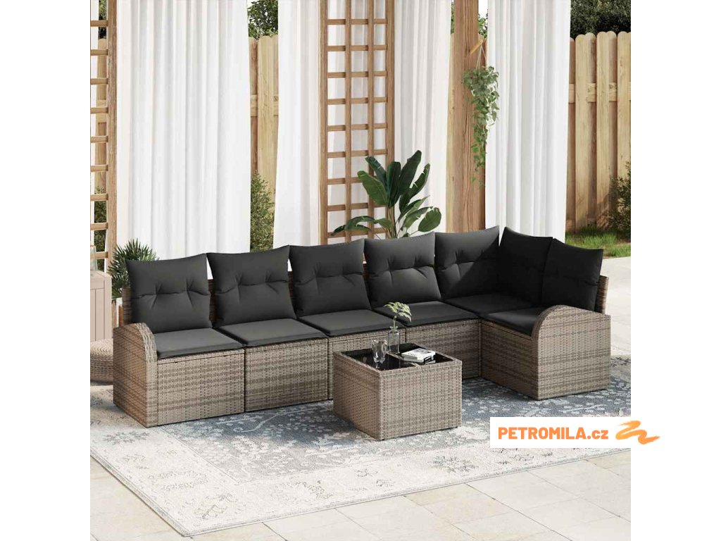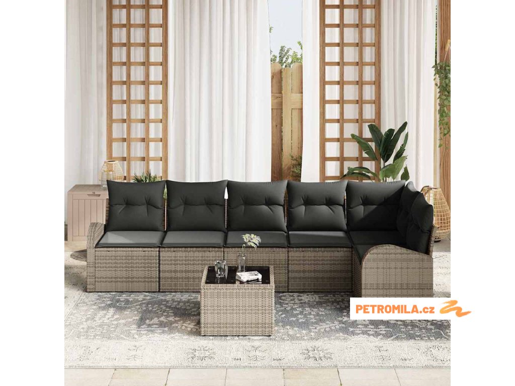 Set pohovek s polštářem s úložištěm 7 pcs Šedá polyratan