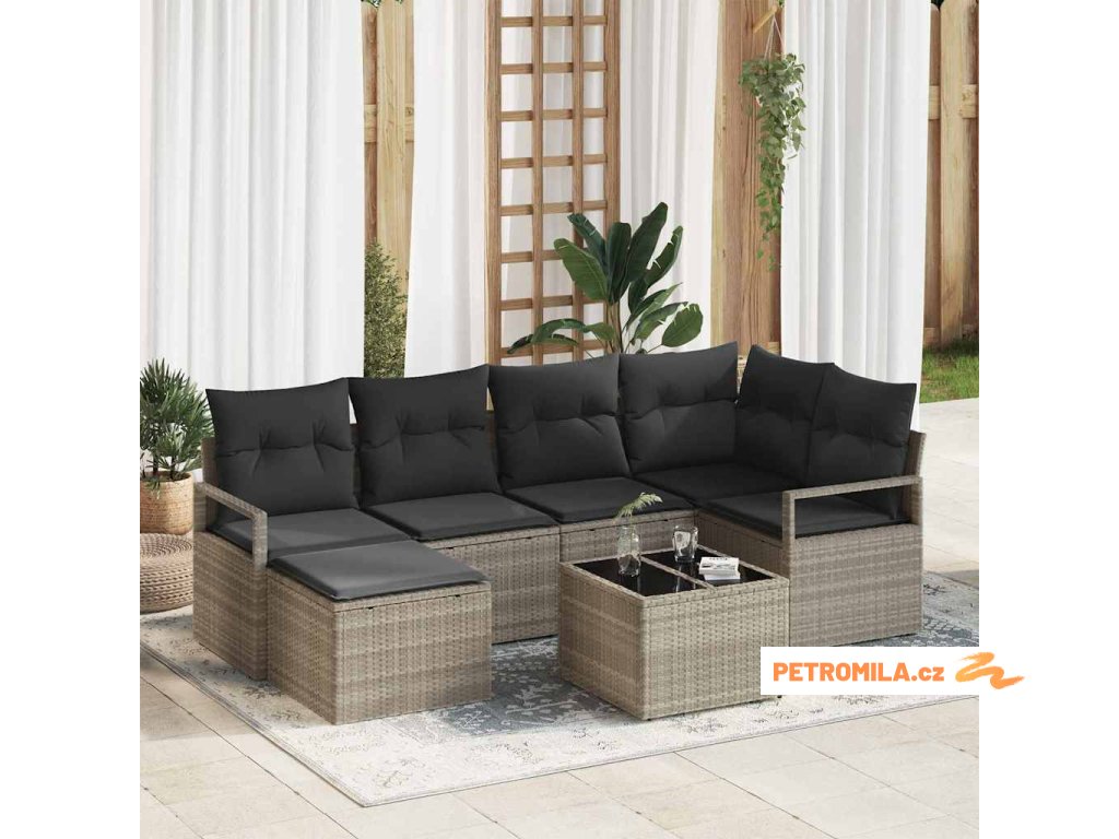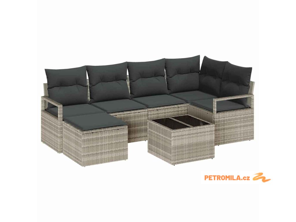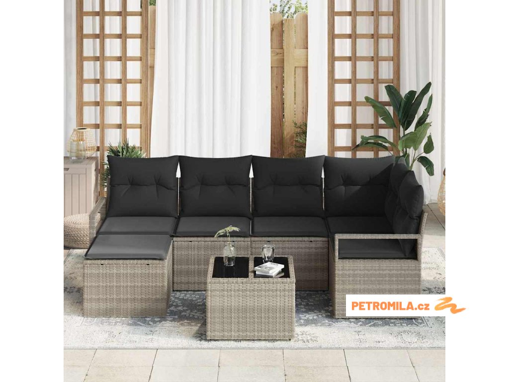 Set pohovek s polštářem s úložištěm 7 pcs Světle šedá polyratan