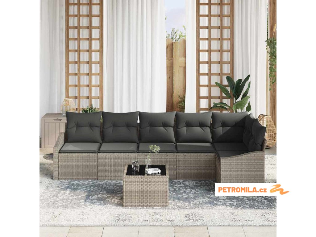 Set pohovek s polštářem s úložištěm 7 pcs Světle šedá polyratan
