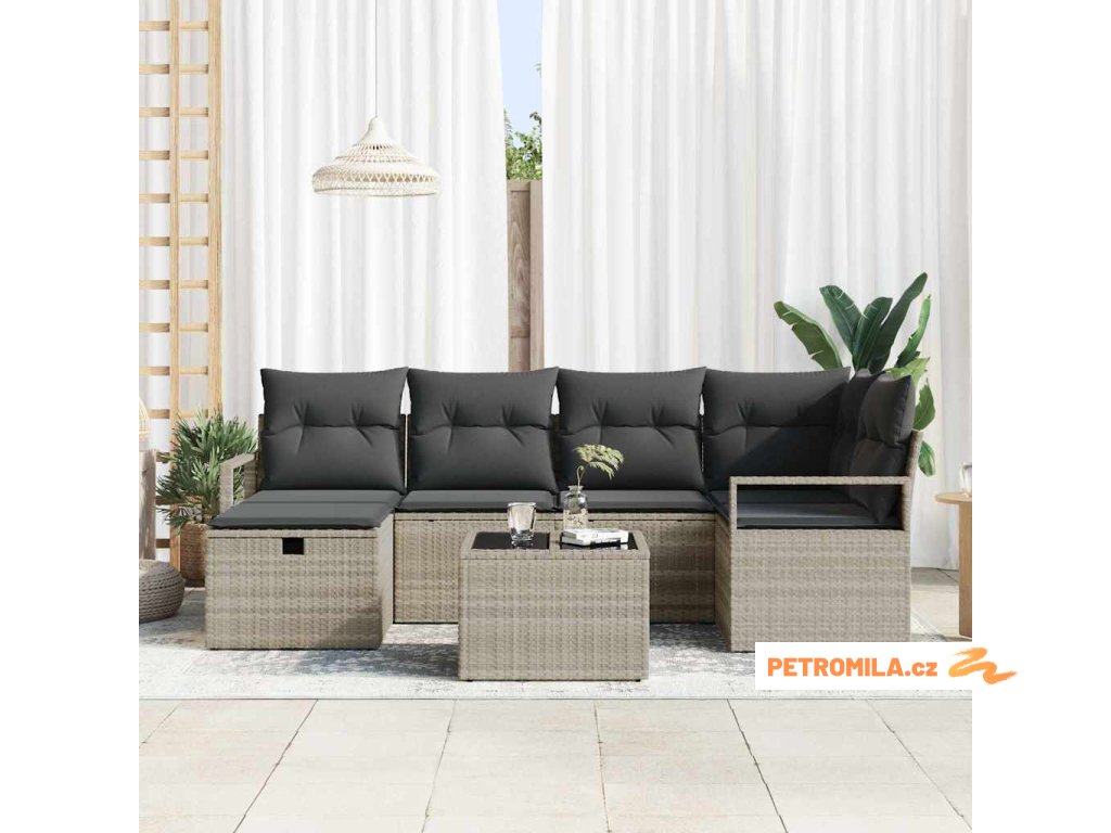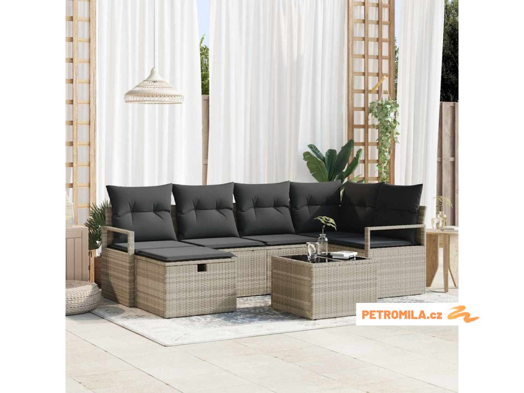Set pohovek s polštářem s úložištěm 7 pcs Světle šedá polyratan