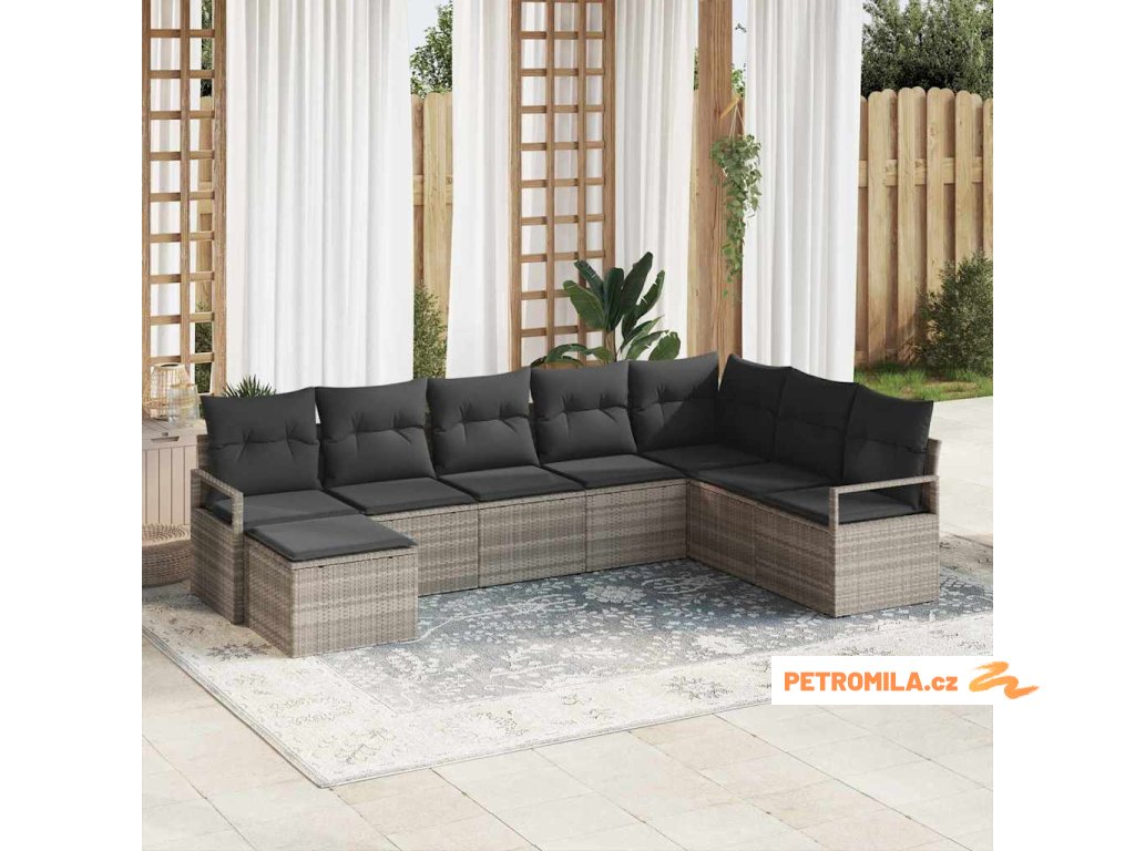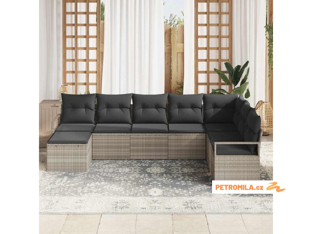 Set pohovek s polštářem s úložištěm 8 pcs Světle šedá polyratan
