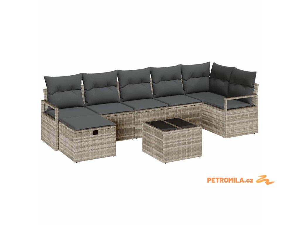 Set pohovek s polštářem s úložištěm 8 pcs Světle šedá polyratan