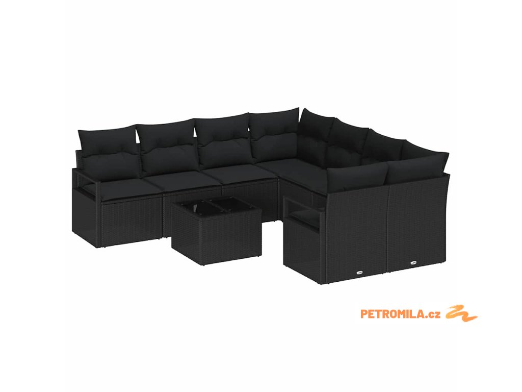 Set pohovek s polštářem s úložištěm 9 pcs Černá polyratan