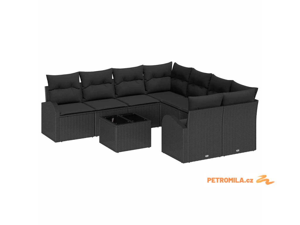 Set pohovek s polštářem s úložištěm 9 pcs Černá polyratan