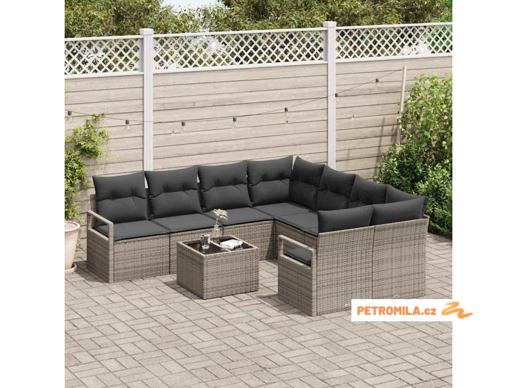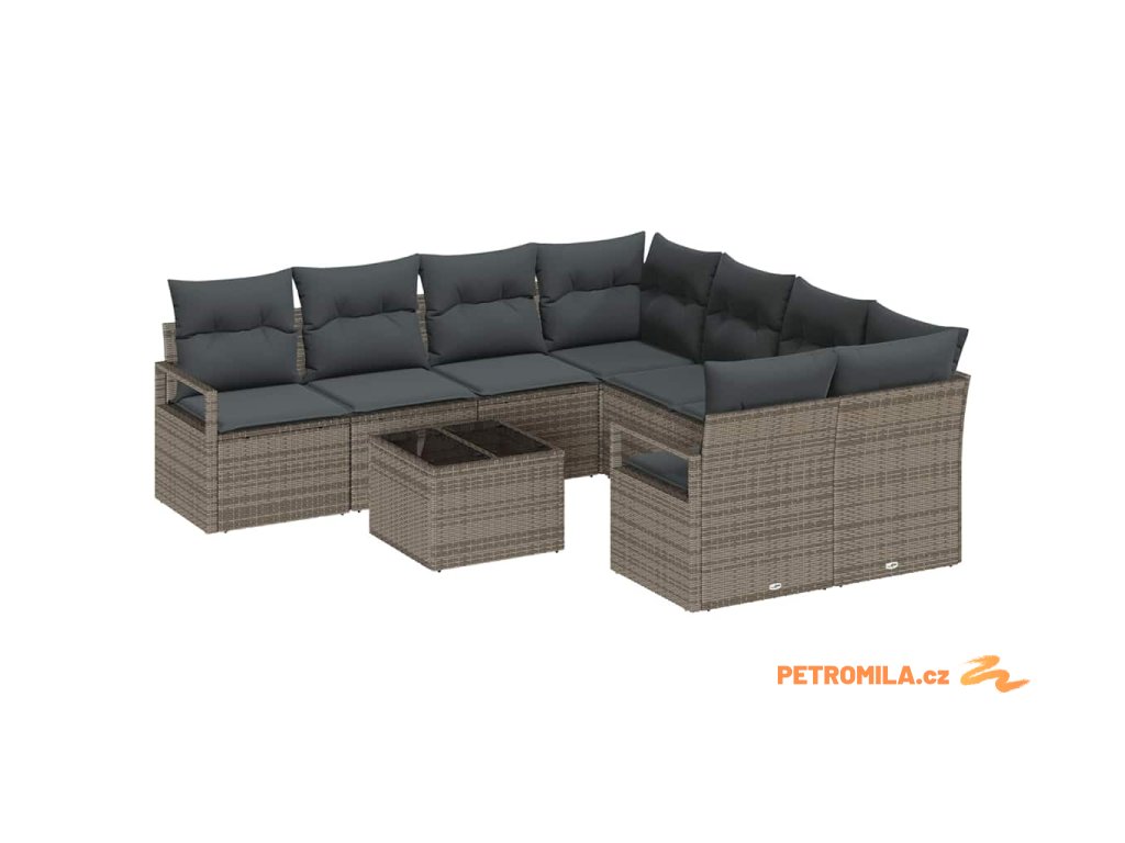 Set pohovek s polštářem s úložištěm 9 pcs Šedá polyratan