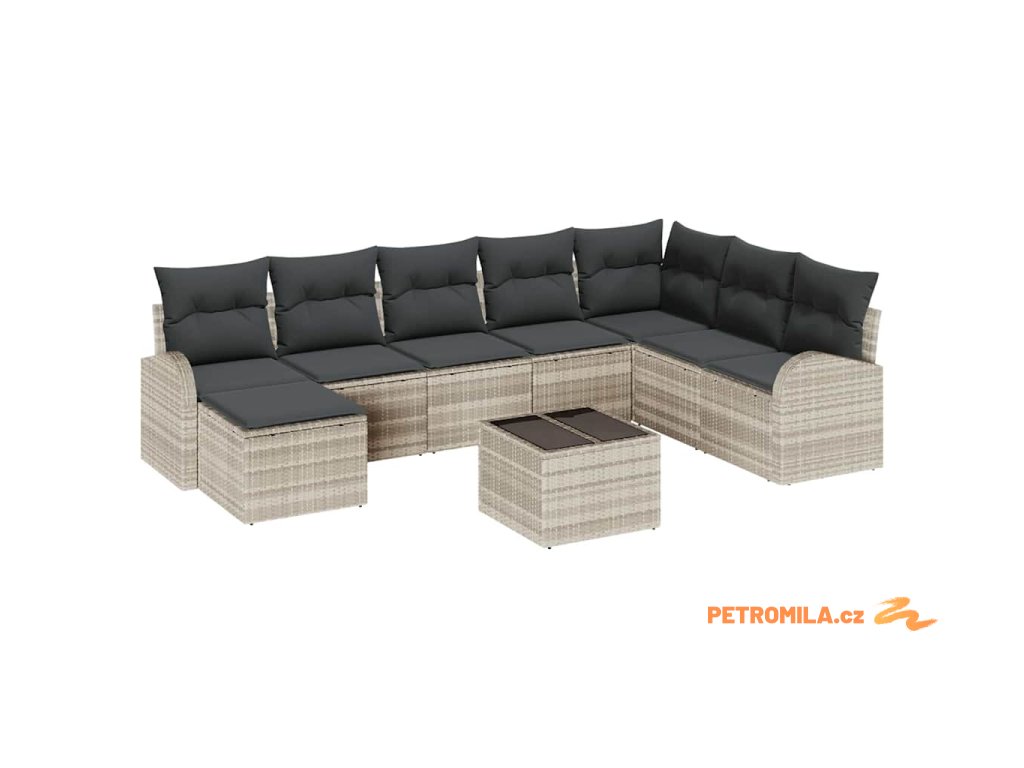 Set pohovek s polštářem s úložištěm 9 pcs Světle šedá polyratan