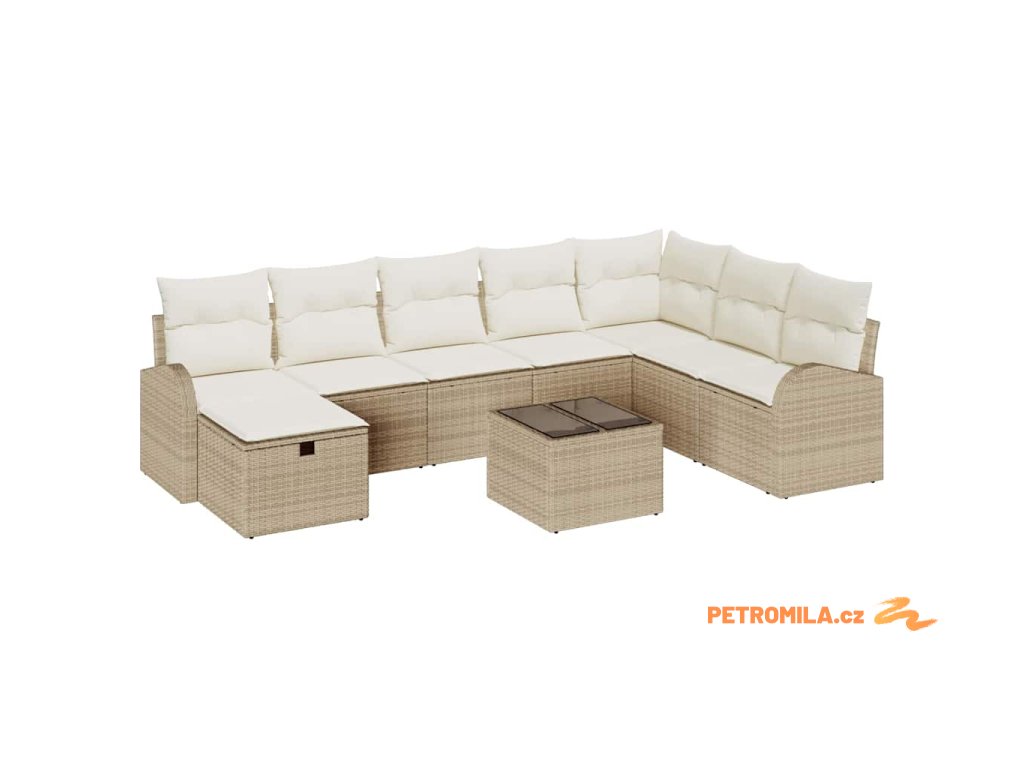 Set pohovek s polštářem s úložištěm béžová a krémová polyratan