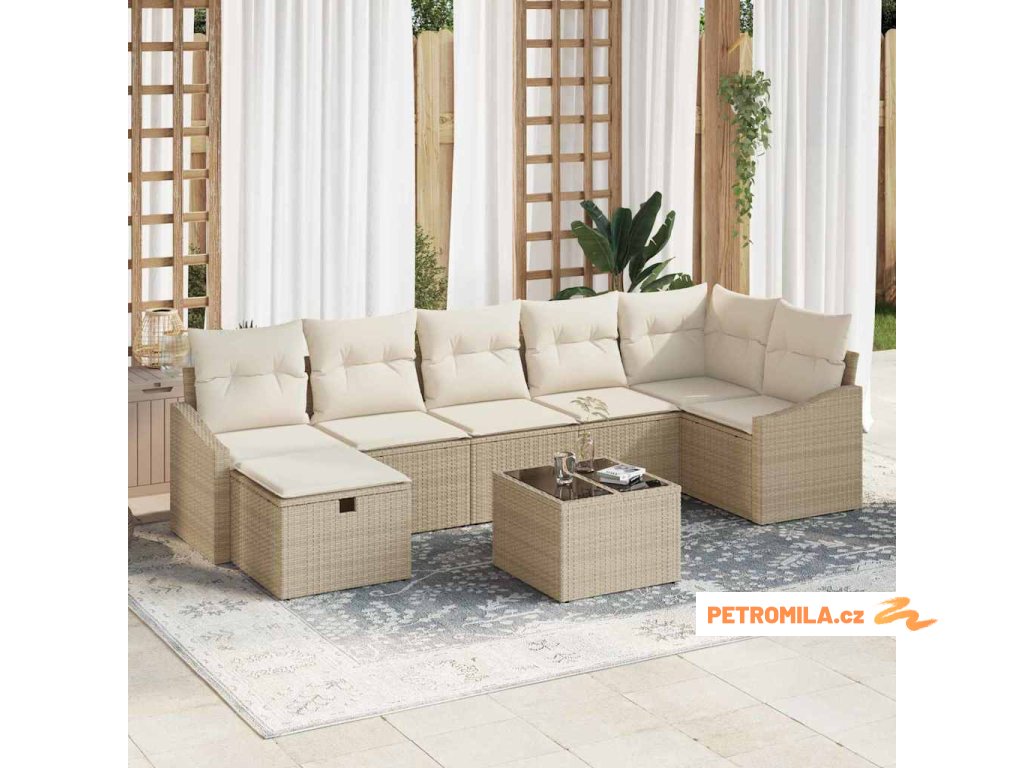 Set pohovek s polštářem s úložištěm Béžová polyratan