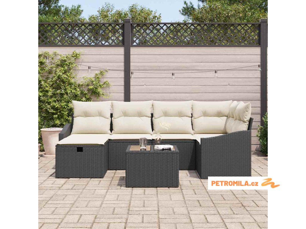 Sada zahradních pohovek s polštářem 6 pcs Černá Poly Ratan