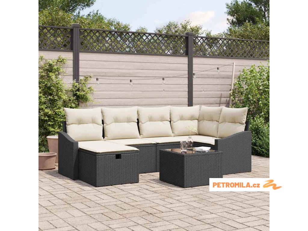 Set pohovek s polštářem s úložištěm Černá a krémová polyratan