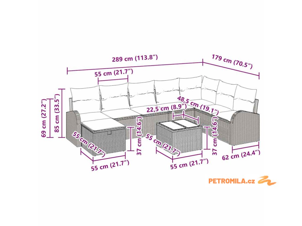 - Materiály: Konstrukce z kvalitního polyratanu je odolná vůči UV záření a dešti, takže váš nábytek zůstane bezvadný po celý rok. Bezšvový design přidává atraktivní vzhled a ladně splyne s každou zahradou nebo terasou.