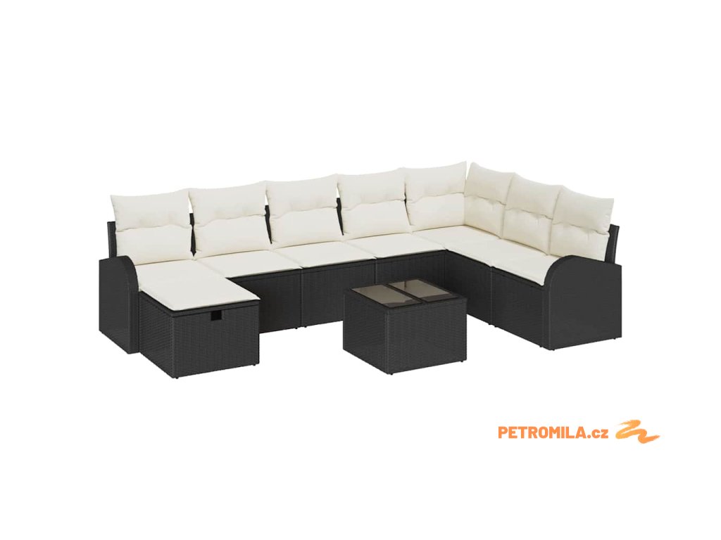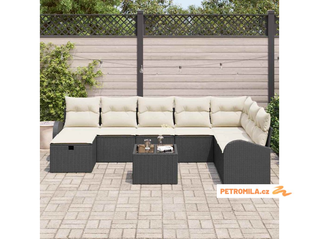 Set pohovek s polštářem s úložištěm Černá a krémová polyratan