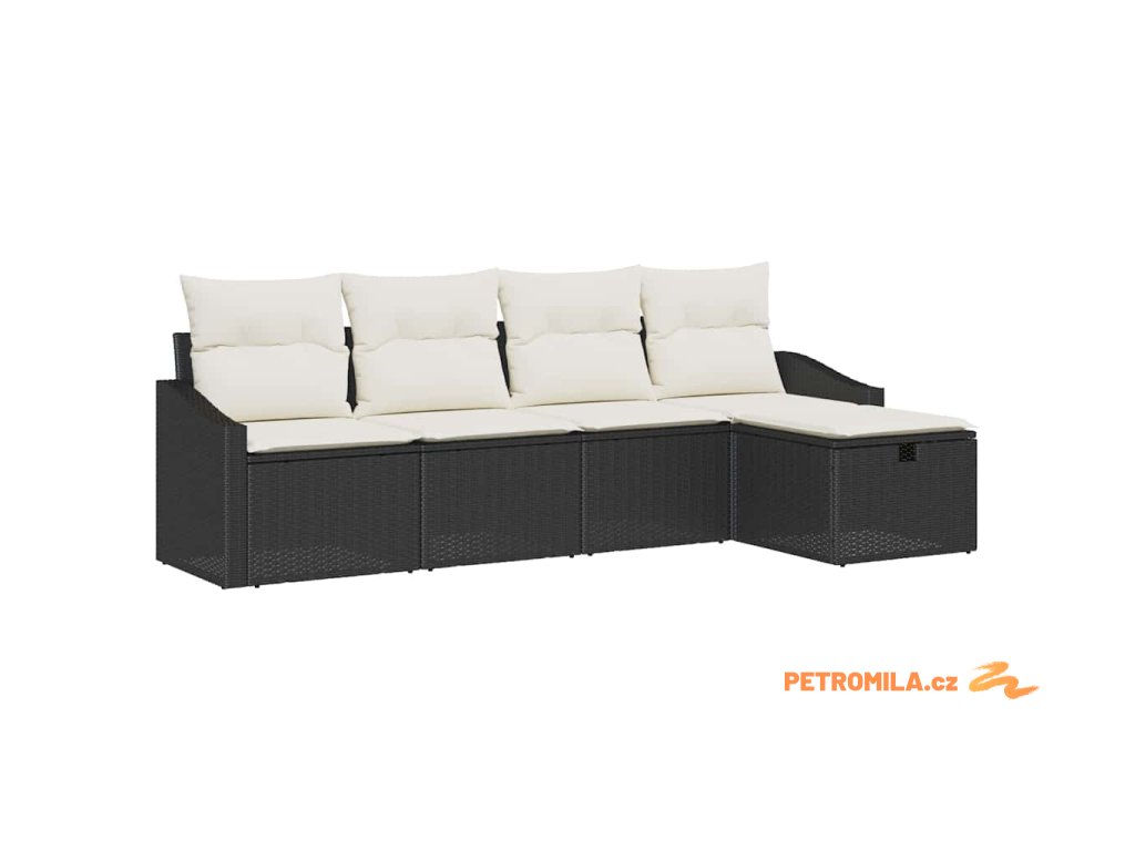 Set pohovek s polštářem s úložištěm Černá polyratan
