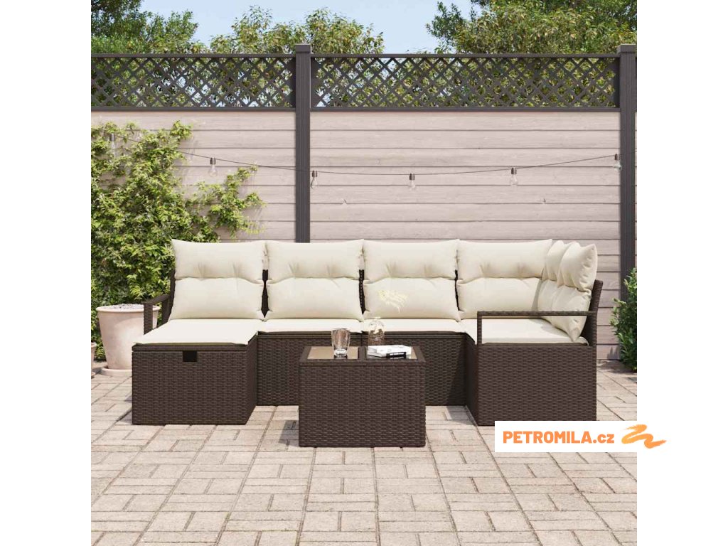 Set pohovek s polštářem s úložištěm Hnědá a krémová polyratan