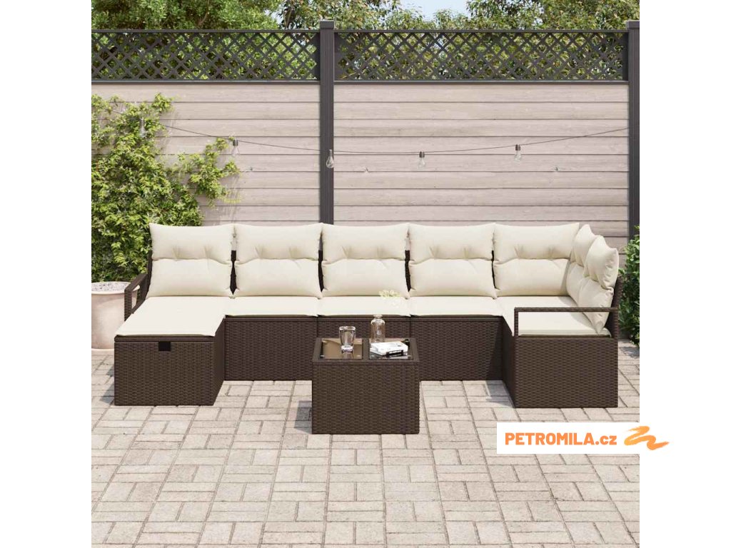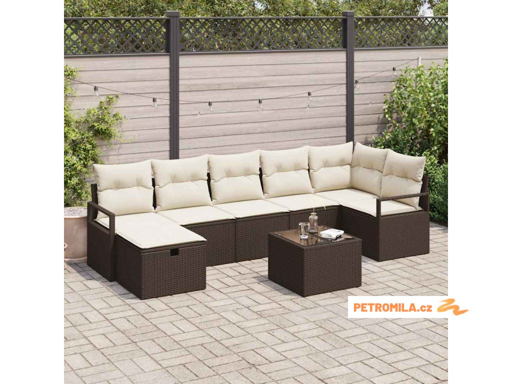 Set pohovek s polštářem s úložištěm Hnědá a krémová polyratan