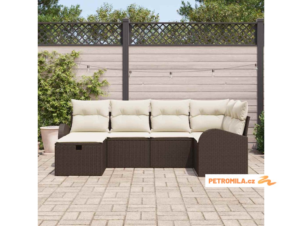 Set pohovek s polštářem s úložištěm Hnědá a krémová polyratan