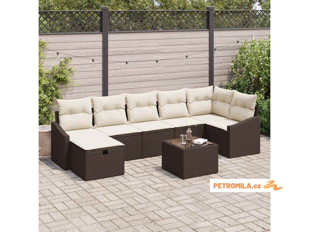 Sada zahradních pohovek s polštářem 9 pcs Béžová Poly ratan