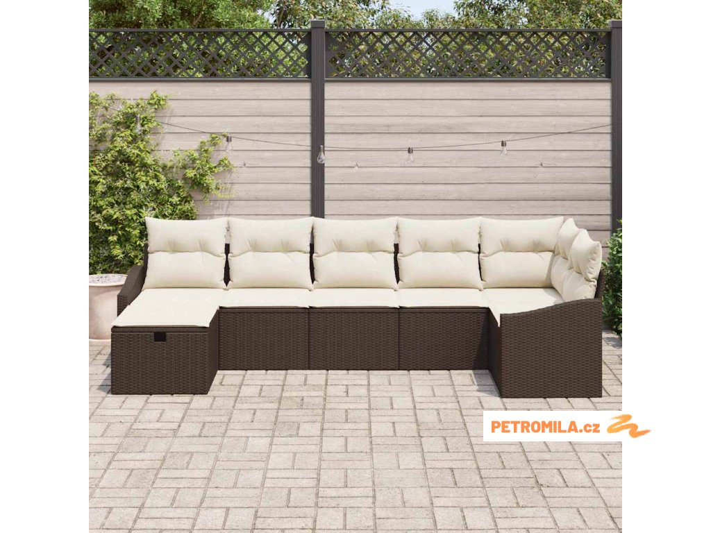Sada zahradních pohovek s polštářem 6 pcs Béžová Poly Ratan