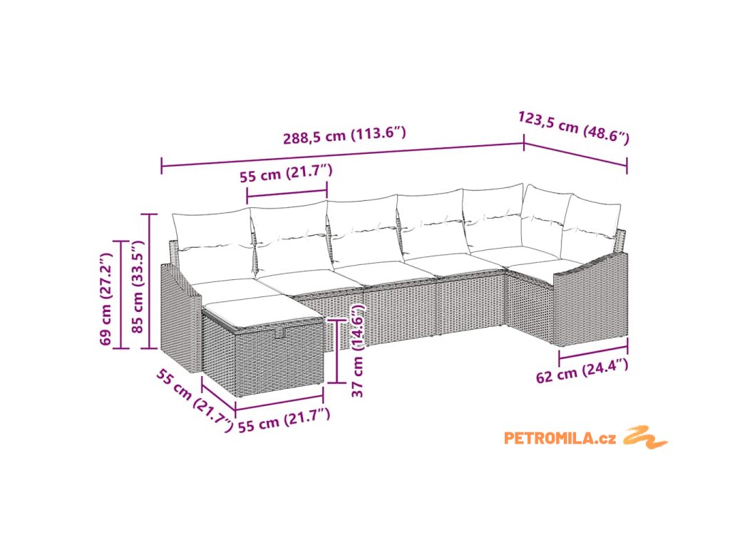 - Součásti: Set má modulární prvky, včetně sedáků s zipy, které se snadno čistí. Polštáře zlepšují pohodlí a zajišťují skvělý zážitek ze sezení. Ergonomické opěrky z polyratanu přidávají na pohodlí a stylu.