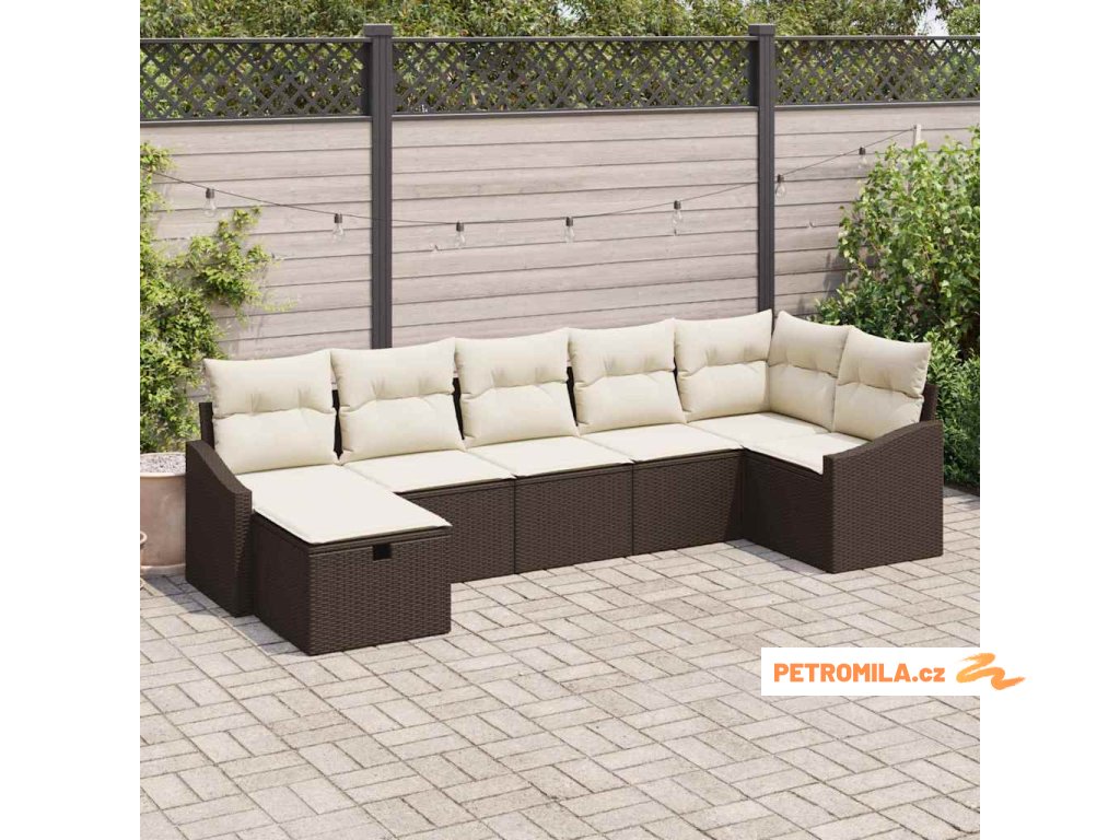 Sada zahradních pohovek s polštářem 8 pcs Béžová Poly ratan