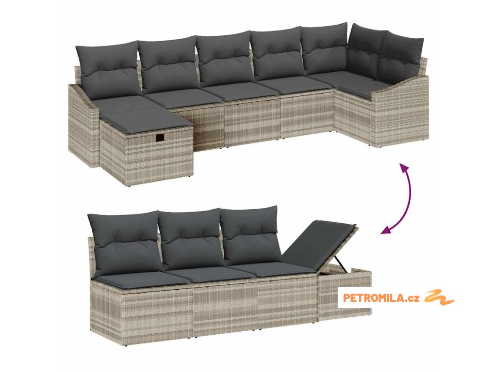 Set pohovek s polštářem s úložištěm Světle šedá polyratan