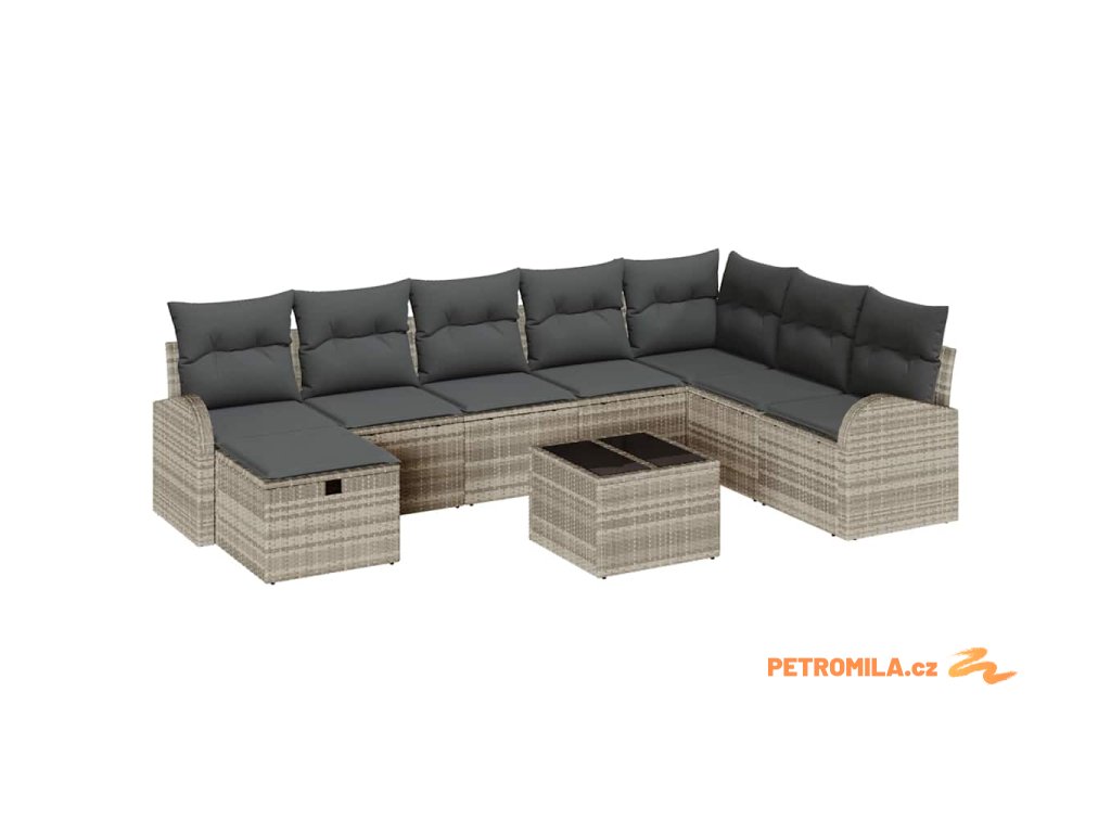 Set pohovek s polštářem s úložištěm Světle šedá polyratan